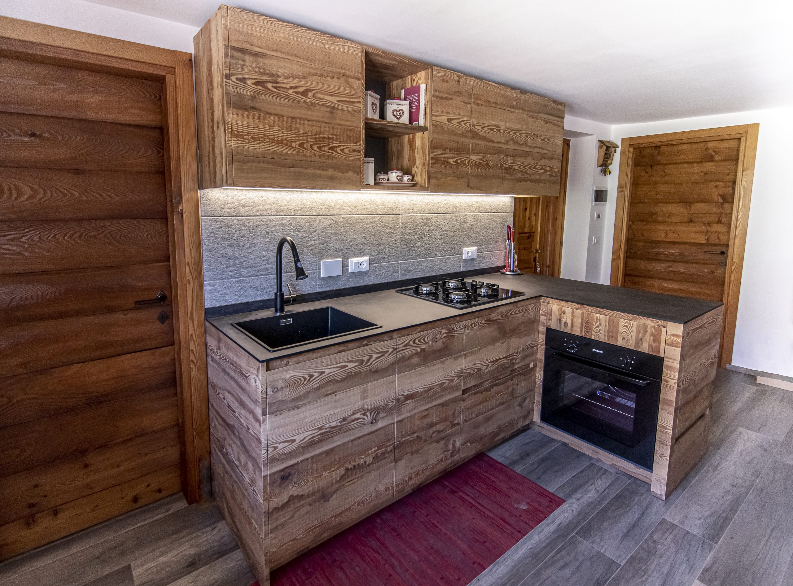 Il Larice, che è legno di montagna, resistente e versatile, rilascia calore e solidità all’occhio che lo guarda.